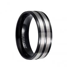 Black and silver wedding band. Choose from our selection of black tungsten rings made with a black titanium alloy coating that adds the black color. Many of our men s black wedding rings are made from tungsten a rare metal. Lovemark black tungsten groove men s wedding band sale 120 00. Mens black tungsten carbide wedding band beveled edges brushed matte finish 8mm.