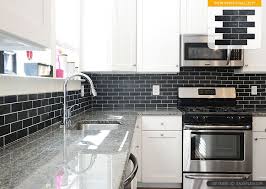 The black element doesn t look striking. Stacked in the tidy arrangement the black and white glass tile kitchen backsplash brings in tidy and contrary feelings.