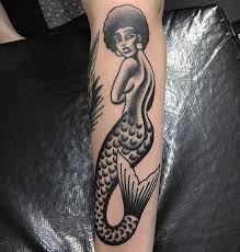 Black and white mermaid sleeve tattoo Black and white mermaid tattoos are beautiful and unique because they usually stands out to fair skin.