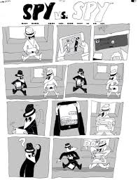 Black and white spy mad tv It features two spies both wearing oppisite clothe colors black n white who constantly fight ech otther for victory different people win each times and sometimes there could be another spy a grey spy who tricks one person to help her him.