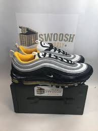 Men S Nike Air Max 97 Black White Yellow Shoes 921522 005