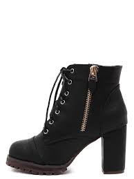 Soda women s magpie faux leather lace up combat mid heel military ankle boots. Also set sale alerts and shop exclusive offers only on shopstyle. Women s ankle boots are the go to staples of our transitional wardrobes bridging the gap between the seasons. Black stacked heel side zip ankle boots 79 99.