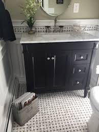 Black bathroom vanity with marble top. By home decorators collection. Shop this collection 870 629 30 899 00. The black finish is the top color choice for many bathroom renovations. Classic white quartzite with an ogee edge suits this bathroom perfectly.
