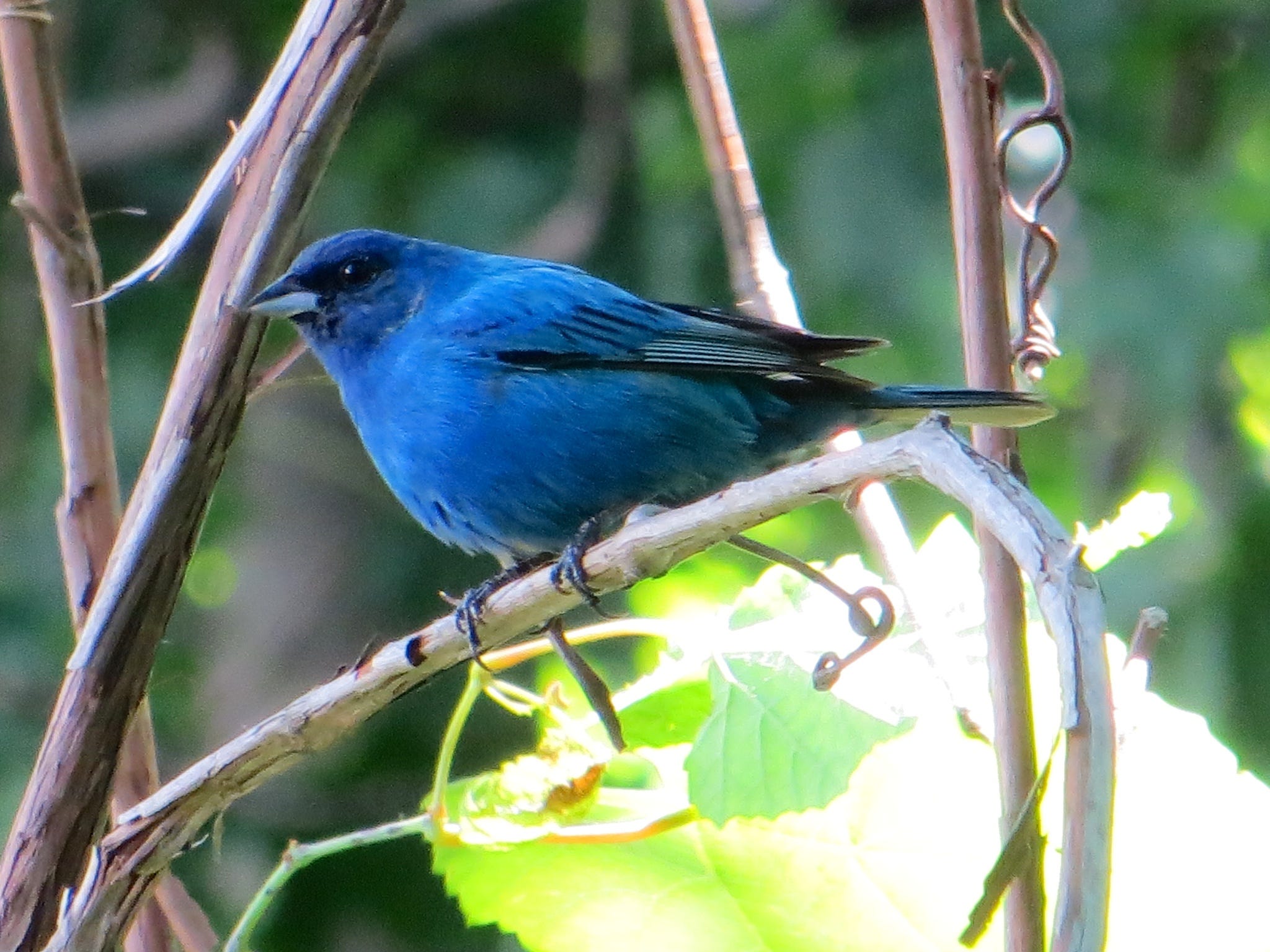 Small warbler that is the most strikingly sexually dimorphic of all wood warblers. Male has dark blue upperparts black throat and mask. Feeds on insects ticks spiders lizards fruits berries and seeds. Can you tell me what type of bird this is.
