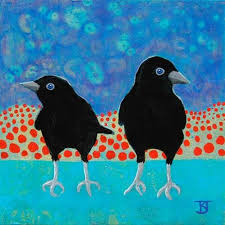 Black bird with red spots on neck Listen too for their distinctive voices.