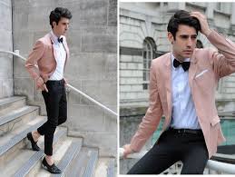 Pink Blazer Black Skinny Smart Trousers Black Bowtie Vintage Black Shoes White Shirt White Pocket Pink Blazer Men Blazer Outfits Men Men New Years Outfit